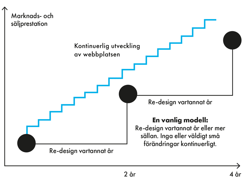 Istället för att göra om webbplatsen med några års mellanrum kan den utvecklas kontinuerligt – baserat på data och insikter.